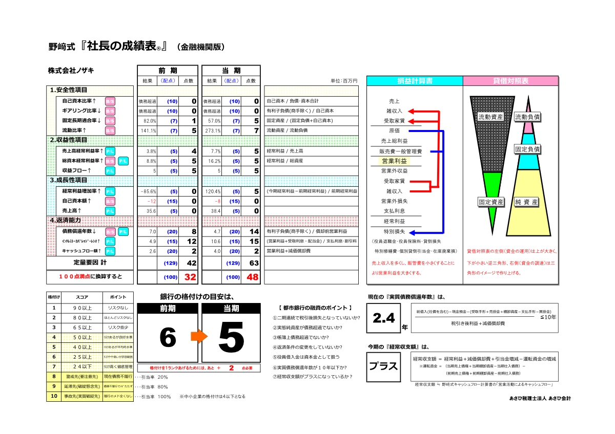 野﨑式月次決算書は、お金を残すための経営経営者および経営幹部が理解するための月次決算書です。