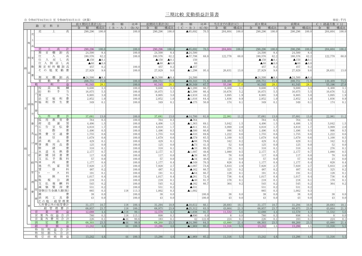 月次変動損益計算書