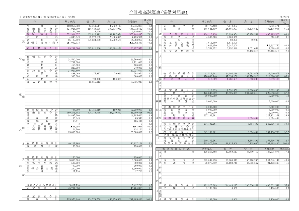 • 賃借対照表