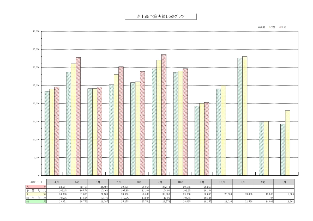 • 売上高予算実績比較グラフ